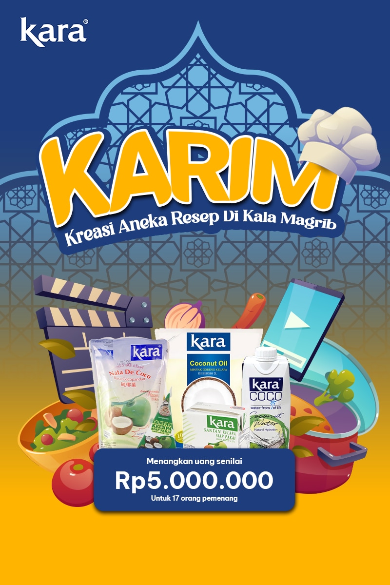 - Dalam 1 kreasi resep, wajib menggunakan minimal 2 produk Kara (minyak goreng, coconut water, santan atau nata de coco)