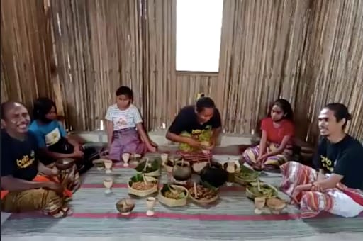 Terakhir, kita akan makan bersama dengan mengikuti tradisi dari orang Mollo yaitu hanya satu orang yang mengambilkan makanan dan memberikannya kepada orang-orang, kalau kamu udah kebagian makanan kamu gak bisa langsung makan harus menunggu semuanya mendapat makanan, kalau ada yang makan duluan nanti ada sanksi atau hukumannya, lho. Kamu juga gak bisa langsung menghabiskan makanan kamu, dan harus menunggu semuanya habis. Paling nggak kamu harus menyisakan satu suapan terakhir yang akan dimakan sama-sama, karena mulai makannya sama-sama jadi kita harus menghabiskan makannya bersama-sama juga.