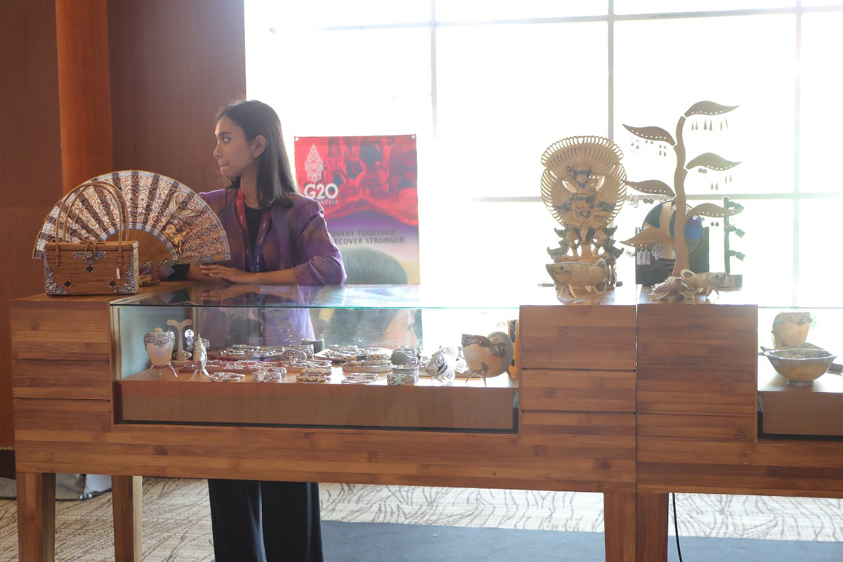 Salah satu gerai UMKM yang juga selalu ramai adalah asesoris dari perak yang berasal dari Singapadu, Gianyar, anting, kalung dan gelang dengan desain elegan menjadi pilihan paling banyak yang dibeli oleh jurnalis terutama dari media asing.